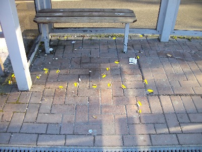 Manch ein Tabakrauchkonsument, an Haltestellen des ÖPNV auch zu beobachten, in ca 8 von 10  Fällen, lässt seine Kippe achtlos zu Boden fallen.