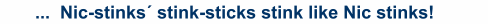 "Nic-stink´s Schock-Rap" böte sich, von den Mitglieder eines x-beliebigen bundesdeutschen Gesundheitsausschusses intoniert, auch als gemeinschaftliche Einstimmung unserer feinen Damen und Herren VolksvertreterInnen, die Ihren eigenen Atemweg retten und in politischen Runden willkürlich zu Berauchende definieren, zur Einstimmung einer  x-ten Folge einer Sitzung zum sog. "Nichtraucherschutz"* an: