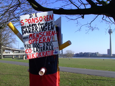 Nun gut, die Würde des Bundestabakopfermahnmals immerhin ist unantastbar, also Verlagerung des stillen und friedlichen Gedenkens auf die andere Strassenseite.