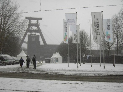 Höchste Sicherheitsstufe: Wenn sich die Politprominenz angekündigt hat, heute waren neben den BürgerInnen des "Reviers" auch EU-Kommissionspräsident Manuel Barroso, der Bundespräsident , Ministerpräsident Jürgern Rüttgers (der, der sich den eigenen Atemweg rettet und in politischer Runde über die Berauchung von arbeitenden BürgerInnen befindet) (C) Clas Hillebrand