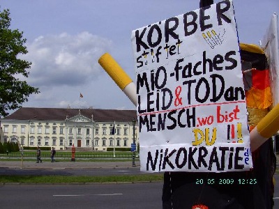 Deutschland organisierte die Inititive TAV, Ihre Initiative für Tabak-Abgas-Vermeidung vor dem Schloss Bellevue ein stilles und friedliches Gedenken für die Opfer des Nikotin-Lobbyismus mit anschliessendem Walk of Shame zum BrandenburgerTor.