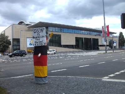 Meinungsäusserung und Handzettelverteilung der Bereich auf der dem Zugang zum "Kulturmetropolen"- Festgelände gegenüberliegenden
