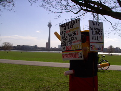 Leider fiel die avisierte gestrige Mahnwache vor dem Düsseldorfer Rathaus anlässlich des Int. "Tag der Frau", welche auf die auseinanderdriftende Fertilität zwischen PolitikerInnen und normalsterblichen BürgerInnen durch Berauchung am Arbeitsplatz hinweisen sollte, aus organisatorischen Gründen aus.